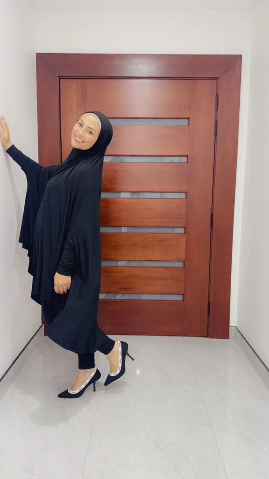 3 in 1 Chiffon hijab with attached zip cap - Ninja